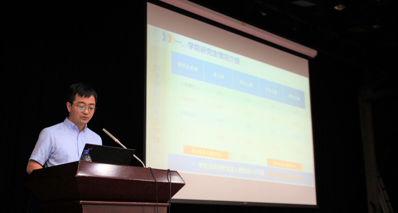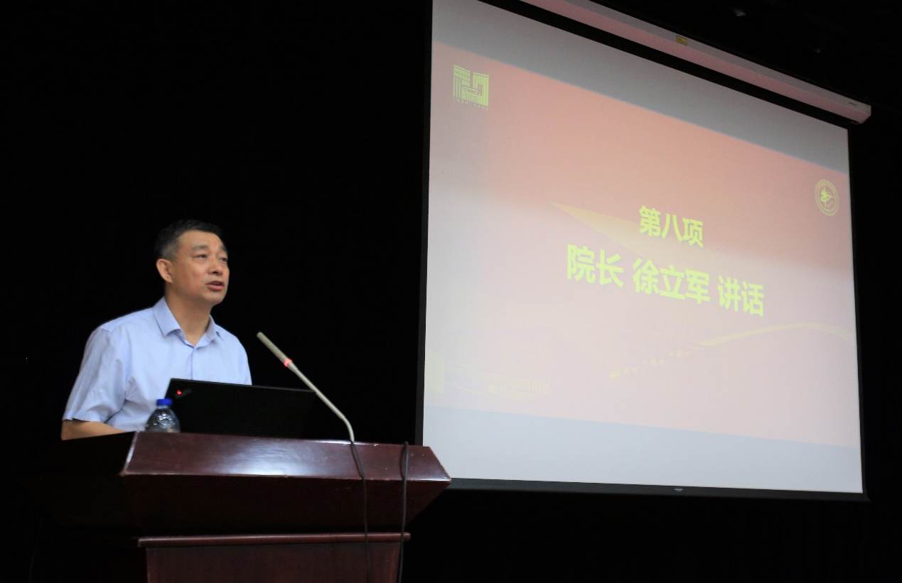 徐立军院长代表学院向研究生新同学表示了衷心的祝贺和热烈的欢迎,对全体新生提出了殷切的期望,希望同学们在研究生阶段及未来的人生道路中,都能坚守爱国奉献的初心,练就货真价实的本领,锤炼敢为人先的品格,成长为堪当民族复兴大任的时代新人。