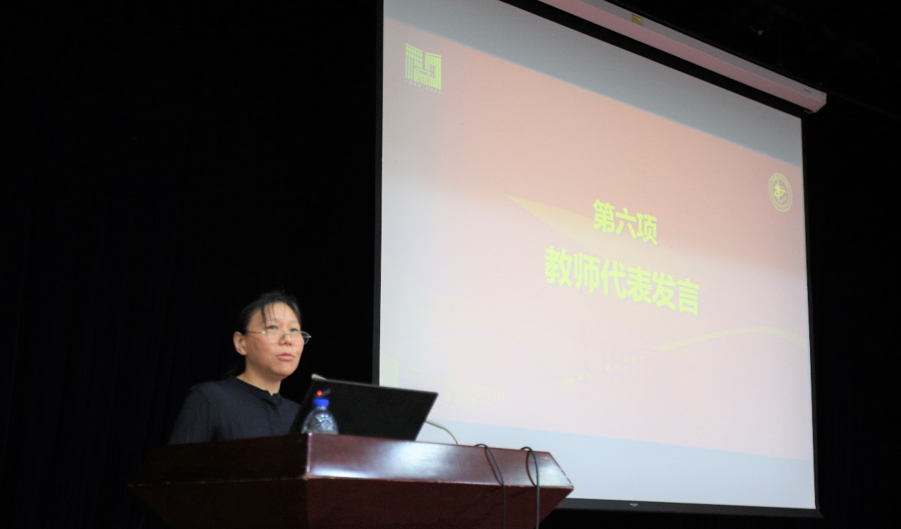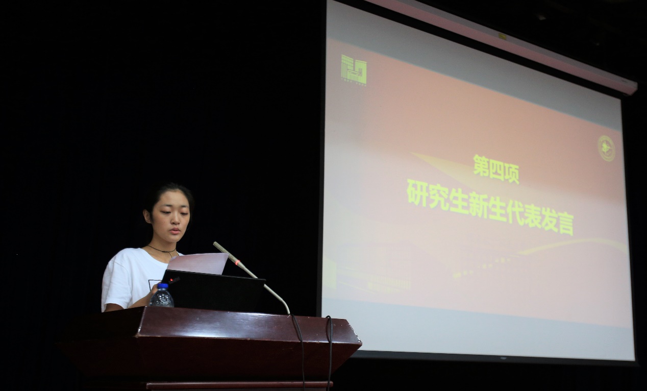 教师代表发言环节,江洁教授激励同学们树立具有挑战性的研究目标,并向在座新生提出了几点期盼,强调只有多阅读文献、思维领先、方法领先,才能做出领先的成果。同时,江洁老师也建议大家在潜心钻研学习的同时,注意积极锻炼身体,提升韧度、健康成长。