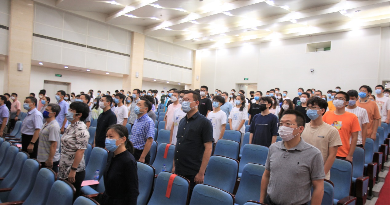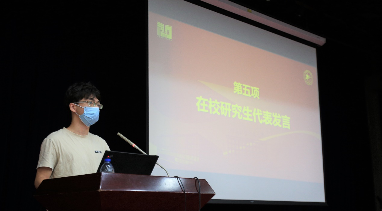 接着,在校研究生代表2020级博士生李移隆同学从自身经验讲述了个人科研生活经历与体会,鼓励大家珍惜研究生时光,度过充实笃学的研究生生涯,多读文献,多做实验,认真科研;同时也应该将“陀螺精神”的坐标根植于自己未来的科研领域, 全力以赴,谱写盛世华章。