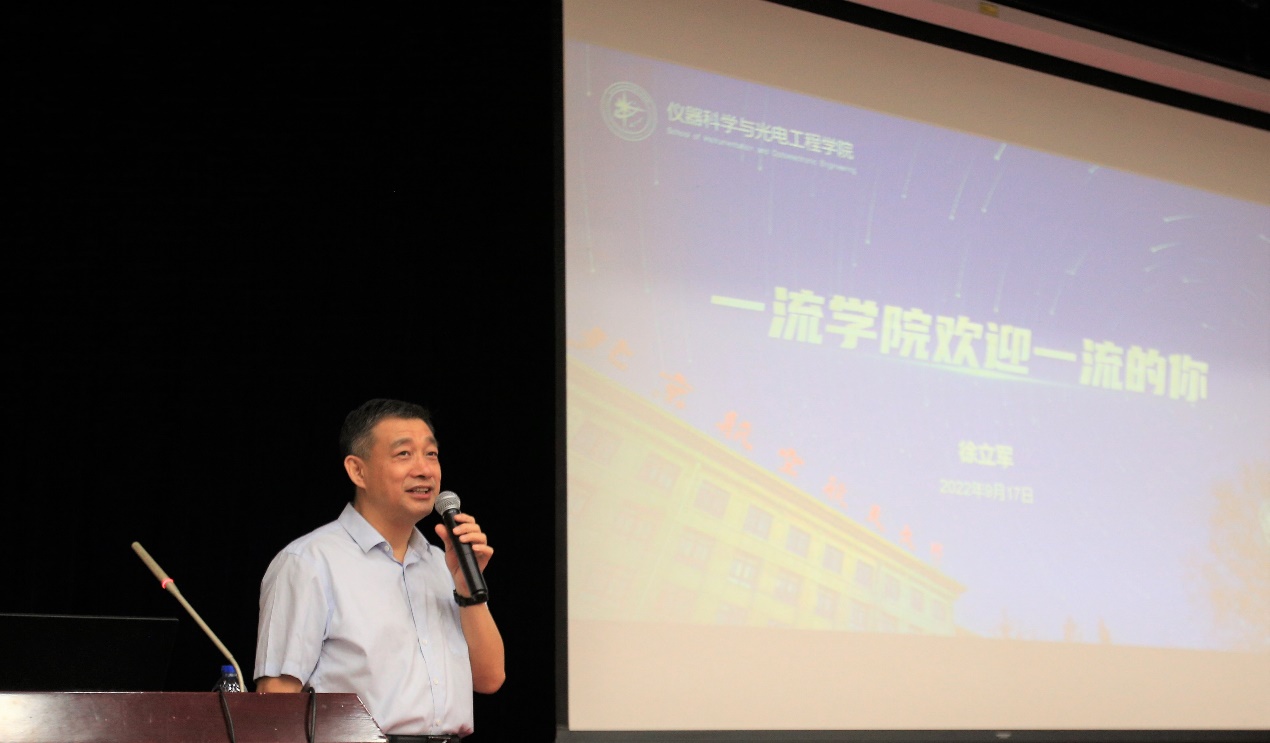 首先,徐立军院长以“一流的学院欢迎一流的你”为题介绍学院情况,深情回顾了三代北航仪器光电人办学的历程,展示了学院一流的思想引领、培养理念、师资队伍、科研团队、平台基地、学科专业、教学及条件,号召同学们不忘初心、牢记使命,要树立远大理想、热爱祖国、担当时代责任,要多维度发展、创造多彩的研究生生活。