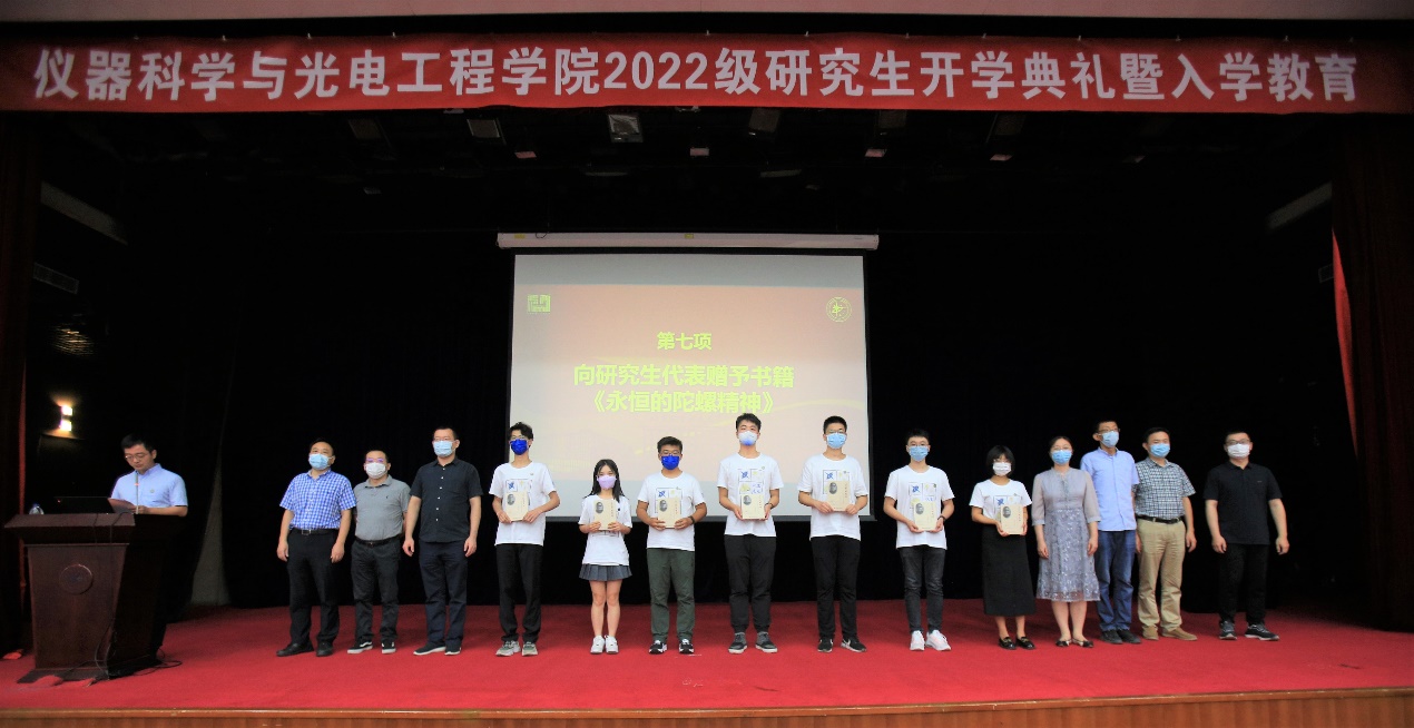 向2022级研究生代表赠予《永恒的陀螺精神》书籍,由参会的各系所领导向学生代表赠予书籍。