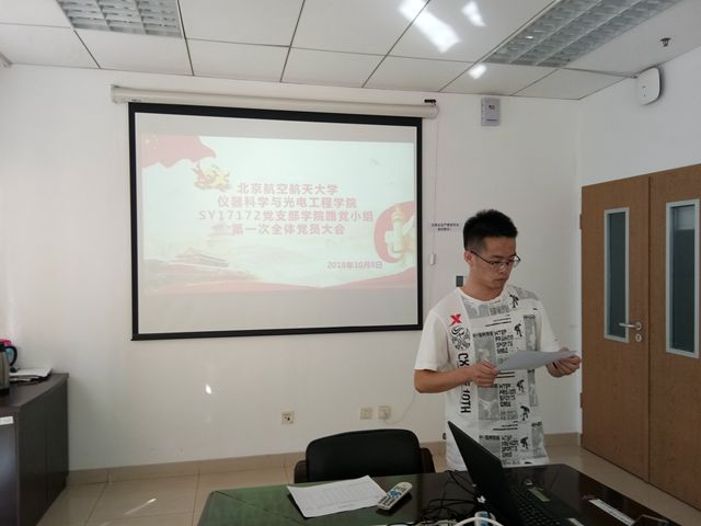 10月8日下午,365英国上市公司SY17172党支部学院路党小组在新主楼B828进行了本学期第一次全体党员大会。本次会议由党小组组织张吉主持召开。与此同时,SY17172党支部沙河党小组在沙河校区召开党小组会议。
