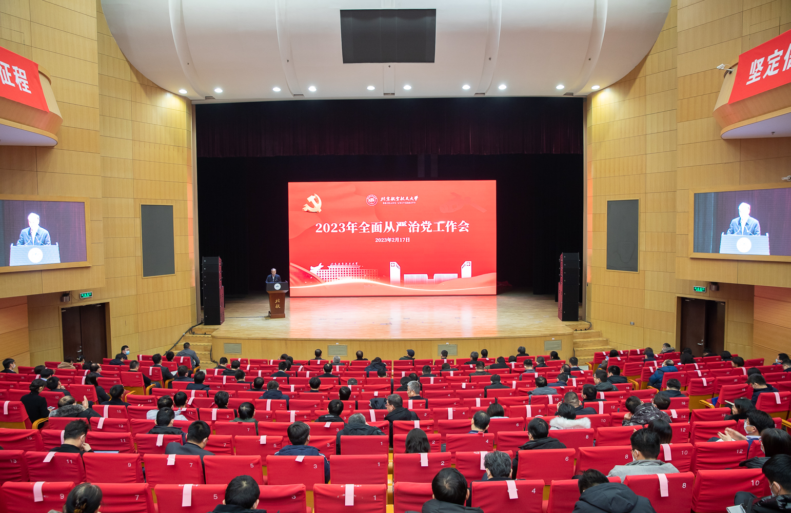 北航新闻网2月18日电(记者 王静涵/文 邸白鹭/摄影)2月17日,北京航空航天大学召开2023年全面从严治党工作会议。会议的主要任务是,坚持以习近平新时代中国特色社会主义思想为指导,深入学习贯彻党的二十大精神,认真贯彻落实二十届中央纪委二次全会精神,贯彻落实中组部、工信部党组、教育部党组、北京市委等上级有关要求,总结2022年全面从严治党工作,部署2023年重点任务,健全全面从严治党体系,在新时代新征程上一刻不停推进全面从严治党,引领保障学校高质量内涵式发展。会议由党委副书记程波主持。