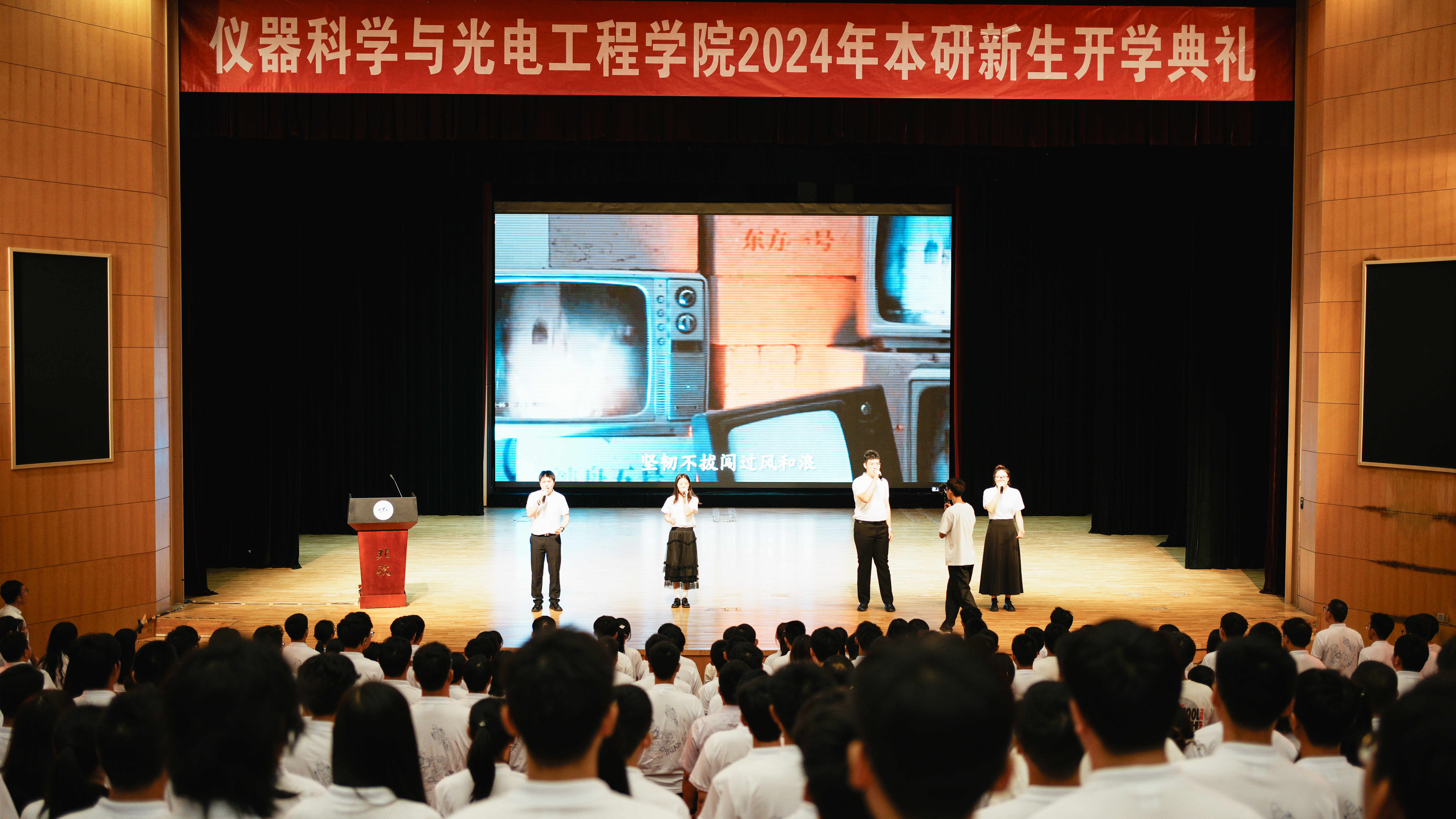 开学典礼在庄严的国歌中拉开序幕。2023级本科新生代表高发展同学表示应以舍我其谁的霸气、无所畏惧的勇气、胸怀寰宇的志气,在仰望星空的同时脚踏实地,立志为中华民族的伟大复兴做一只永不停转的陀螺。2024级研究生新生代表杨嘉源同学表达了对以林士谔先生为代表的三代陀螺人的“陀螺精神”的崇敬之情。他呼吁同学们共同练就过硬本领,勇担时代重任。在校生代表2021级博士生万震同学在发言中分享了自己在仪器学院的学习与科研经历,建议学弟学妹们虚心学习,积极与导师和课题组交流,坚持不懈,持续积累,主动求问,迎接每一个挑战。