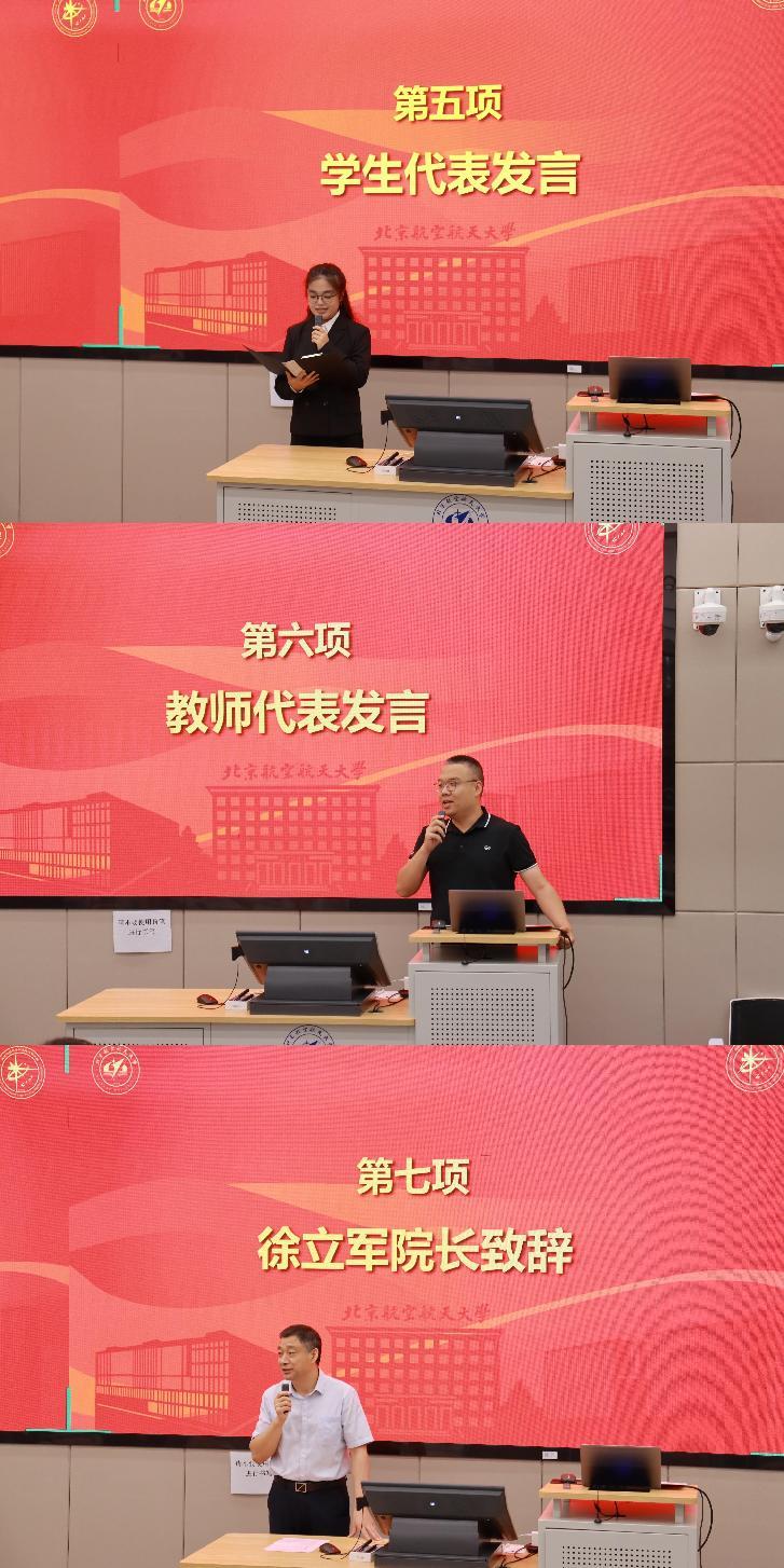 学生代表潘柯如在发言中表达了对老师们“以高度引领、以深度教导、以温度感动”的深切感谢。获奖教师代表谢跃东深情回顾自入职以来教书育人的心路历程。他表示,对教育的热爱是前行动力,责任驱使用心育人,感恩之心则让教师职业愈发神圣。院长徐立军在致辞中向获奖教师表示祝贺,向全体教师表达感谢,并号召全体教师以先进为榜样,弘扬教育家精神,不断提升教育教学水平,为学校和学院发展、教育强国建设贡献力量。