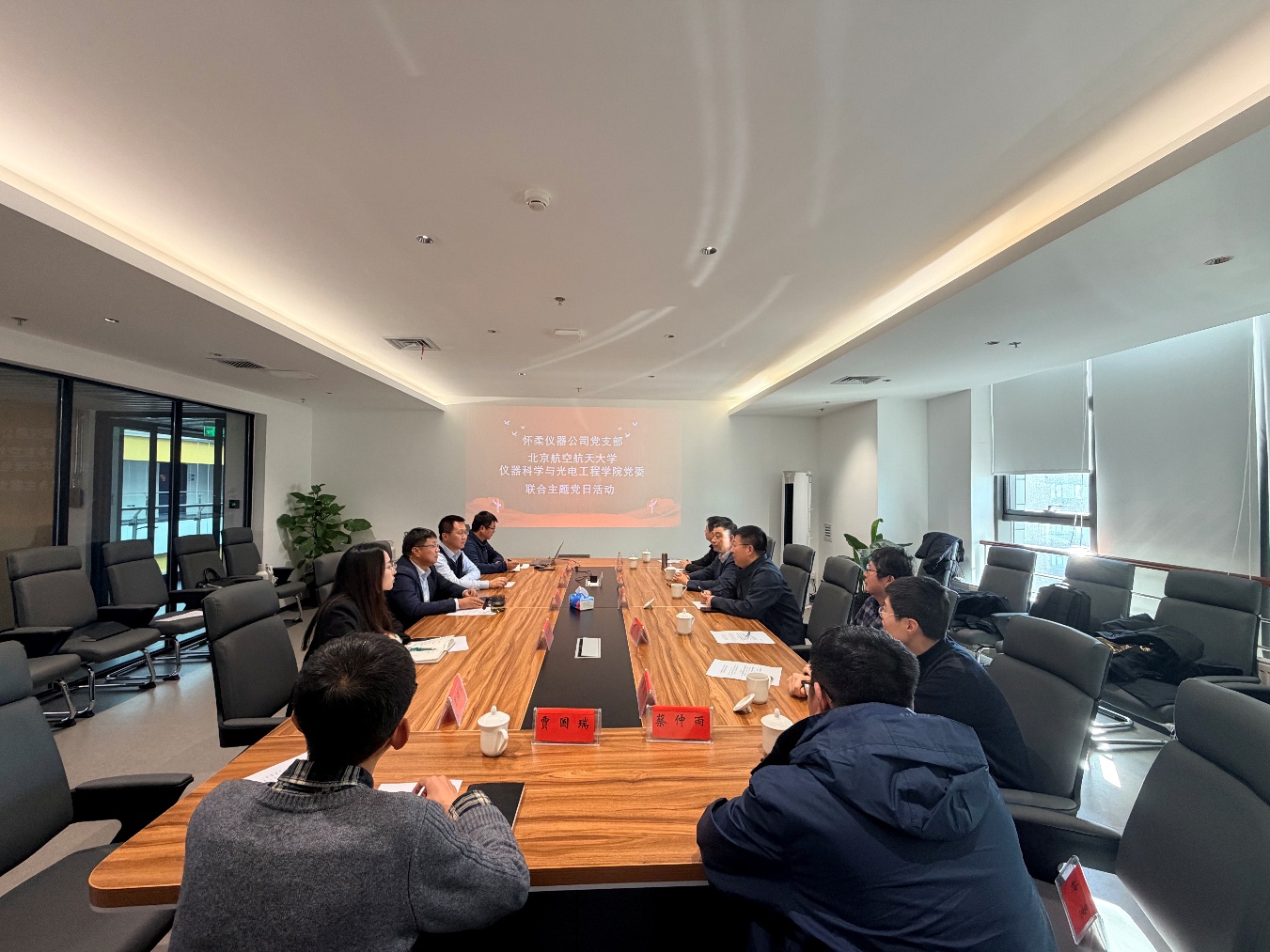 为深入贯彻落实党的二十届四中全会精神,推动高端科学仪器领域产学研协同创新,加强校企合作,深化产教融通,1月20日,北航365英国上市公司党委组织教师代表,由学院党委书记雷晓锋带队,前往北京怀柔仪器和传感器有限公司开展联合主题党日活动,北京怀柔仪器和传感器有限公司董事长张鸣剑,总工程师刘海锋参加活动。