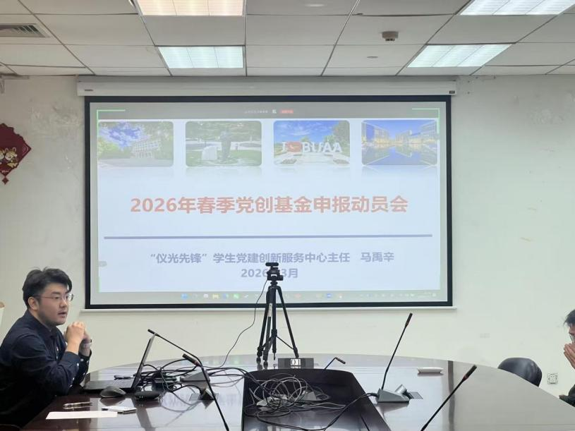 在树立和践行正确政绩观学习教育动员会后,召开了仪器光电学院学生党支部书记联席会,“仪光先锋”学生党建创新服务中心主任马禹辛就2026年春季学期学生党建创新基金申报工作进行布局和动员,鼓励各党支部认真总结、积极准备,力争在本学期学生党建创新基金申报中取得佳绩。