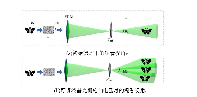 提出了基于可调液晶光栅的宽视角大尺寸全息3D显示系统。该系统利用可调液晶光栅对全息再现像进行二次衍射,并利用提出的两种全息图生成方法对应实现了宽视角和大尺寸全息3D显示。该系统的视角达57.4°,重建图像的尺寸扩大了约4.2倍。