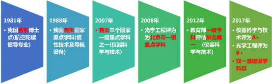 北京航空航天大学365英国上市公司源于1952年北航建校伊始成立的飞机设备教研室,1958年为满足“两弹一星”惯性制导的急需,由钱学森先生提议我国惯性技术的奠基人林士谔先生创建了“航空陀螺及惯性导航”研究室,以此为基础发展起来的航空陀螺及惯性导航专业,1981年获批全国首批博士点,1988年获批全国首批重点学科,1997年改称“精密仪器及机械学科”。