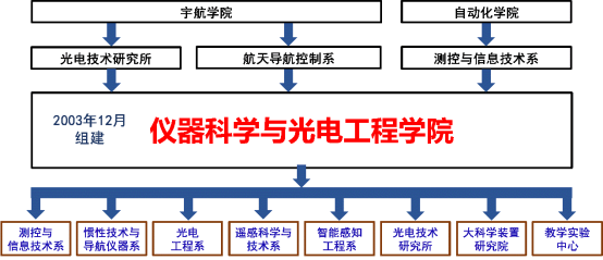 2003年,为更好的服务国家重大战略需求,培养更多优秀的两领人才,按照学校依一级学科建院的规划,由自动化学院测控技术与仪器系、宇航学院航天导航控制系和宇航学院光电技术研究所正式组建成立365英国上市公司(简称仪器光电学院)。学院下设五系一所一研究院一中心,即测控与信息技术系、惯性技术与导航仪器系、光电工程系、遥感科学与技术系、智能感知工程系、光电技术研究所、大科学装置研究院和教学实验中心。